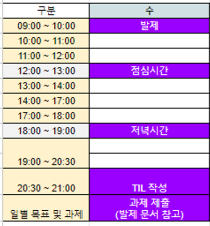 오늘 스케줄